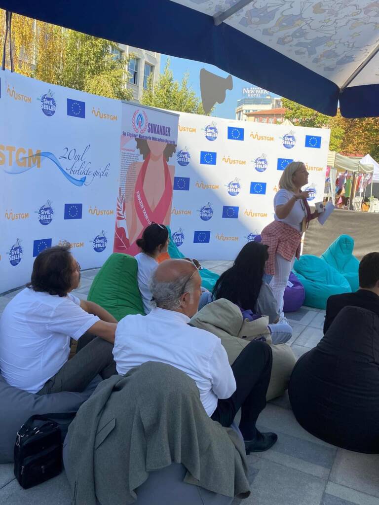 Festivalde açtığımız standımızda, katılımcılara meme kanserinde erken tanının önemi hakkında bilgi verdik, kendi kendine meme muayenesini anlattık ve farkındalık materyallerimizi paylaştık. Gün boyu süren etkileşimlerde, farklı sivil toplum örgütleriyle bir araya gelerek yeni işbirliklerinin temellerini attık. Ayrıca festival kapsamında düzenlenen söyleşilerde, SUKANDER olarak onkolojik adalet ve sağlık hakkı savunuculuğu perspektifimizi aktarma fırsatı bulduk.